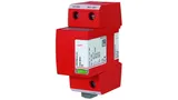 Zweipoliger, modularer Überspannungs-Ableiter Typ 2 für einphasige TN-Systeme, bestehend aus Basiselement und gestecktem Schutzelement mit potentialfreiem Fernmeldekontakt. *