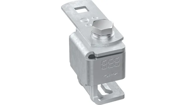 Anschlussklemme aus St/tZn für den Klemmbereich 36–52 mm mit Doppelüberleger.