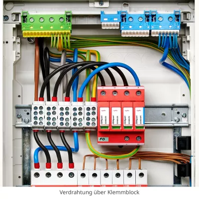 Überspannungsableiter Typ 2 mit Doppelschraubanschluss und Advanced-Circuit Interruption (ACI) für TT- und TN-S-Systeme (3+1-Schaltung).