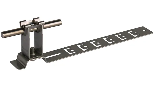 Dachleitungshalter UNIgrip mit geprägter Strebe zur Befestigung von Fang- und Ableitungen für Dachflächen.
