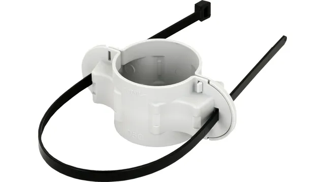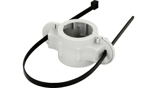 Set de fixation pour le montage de conducteurs HVI light plus sur des tubes supports HVI light plus, comprenant une plaque de raccordement (4 niveaux) et une bague de fixation avec collier de serrage pour la terminaison (y compris quatre demi-pièces de support en plastique et deux fixations pour câble pour la zone PRV).