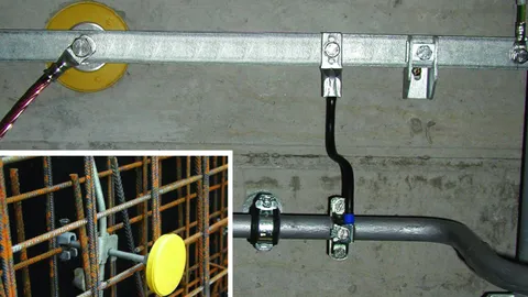 Erdungsfestpunkte und Verbindungsklemmen für den Potentialausgleich. Erder- und Wanddurchführungen zum sicheren Einführen in das Gebäude. Bewehrungsklemmen zur blitzstromtragfähigen Verbindung der Bewehrung mit der Erdungsanlage.