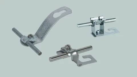 Dachleitungshalter zur Installation einer Fangeinrichtung auf einem Metall- oder Wellplatten-/ Trapezblechdach.