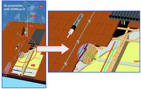 System for isolated air-termination systems of transmitting and receiving systems (parabolic, terrestrial antennas) or entire buildings or building parts.