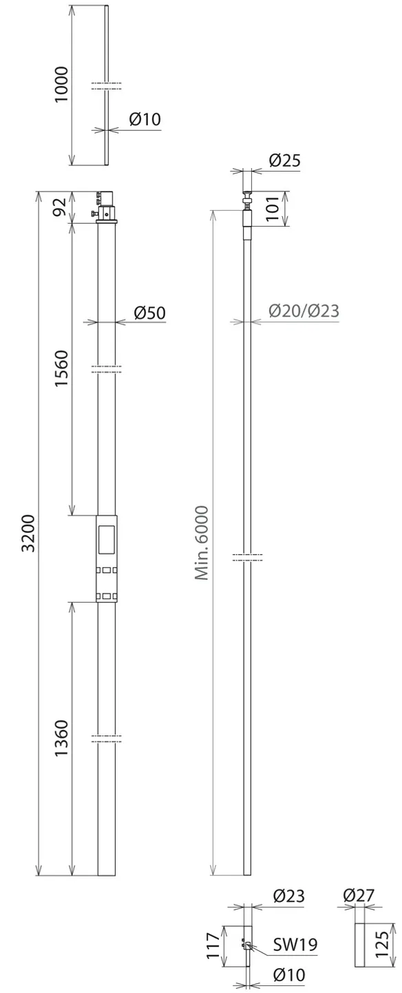 | Max. freie Länge mit Fangstange (Wandmontage) | 5000 mm |