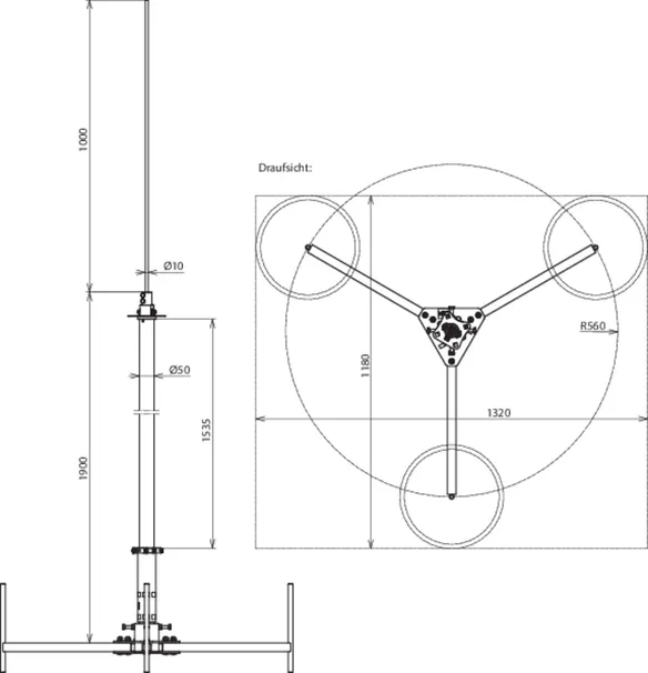 | Max. Böenwindgeschwindigkeit bei 3 Sockeln à 17 kg, 2x HVI light außen | 132 km/h |