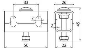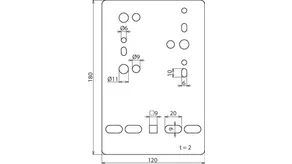 | Befestigungsbohrungen für Kabelbahn | [4x] 9 x 20 / [1x] 9 x 9 mm |
