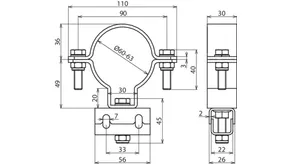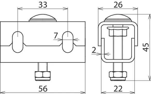 | Befestigungsbohrungen für Gitterbahn | [4x] 9 x 20 / [1x] 9 x 9 mm |