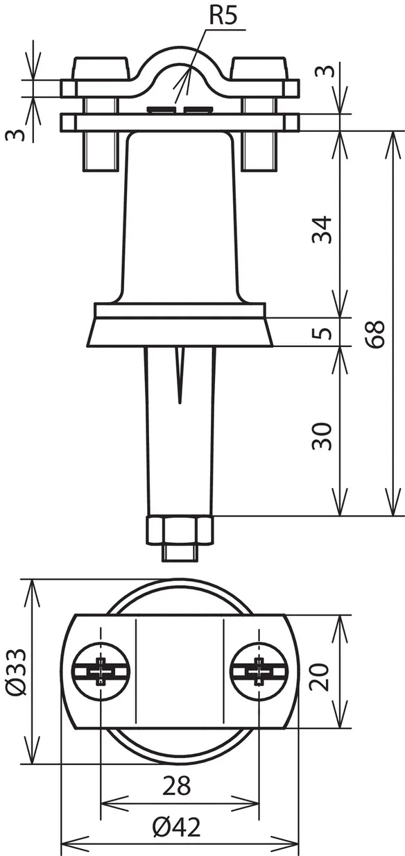 Dachleitungshalter, für Firstziegel und Gratsteine zum Befestigen von Fangleitungen auf dem First