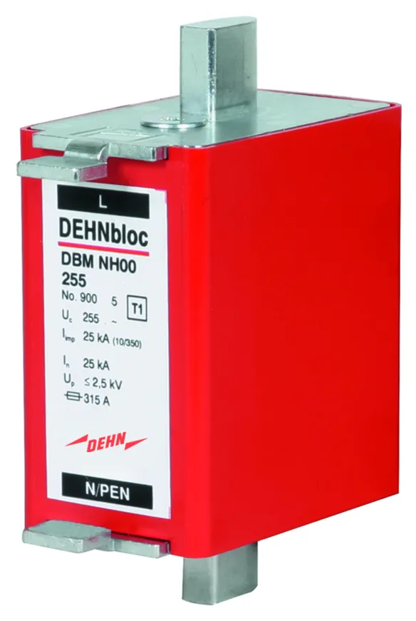 - Ohne zusätzliche Leitungslänge auf Überspannungs-Schutzgerät DEHNguard ... bzw. V(A) NH ... direkt koordiniert