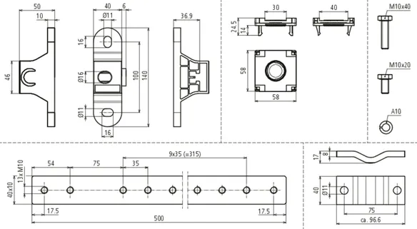 | Max. Kurzschlussstrom (AC 50 Hz / DC / 5 s) St/tZn 30x3,5 mm / 40x5 mm | 1500 A / T4 |