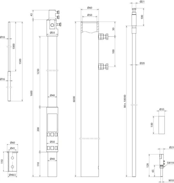 Der teilbare Fangmast / das Set besteht aus: – Fangstange Al, Ø16/10 mm, Länge 1500 mm – Stützrohr GFK/Al Ø40/50 mm, Länge 1600 mm – Adapter St/tZn, Ø40/50 mm – Mastrohr St/tZn, Ø60 mm, Länge 6000 mm (max. Transprotlänge) – HVI light plus Leitung (vorkonfektioniert Rohrinnenverlegung)