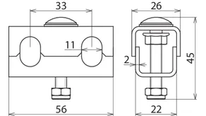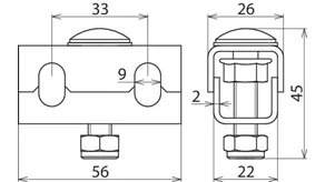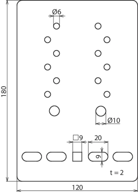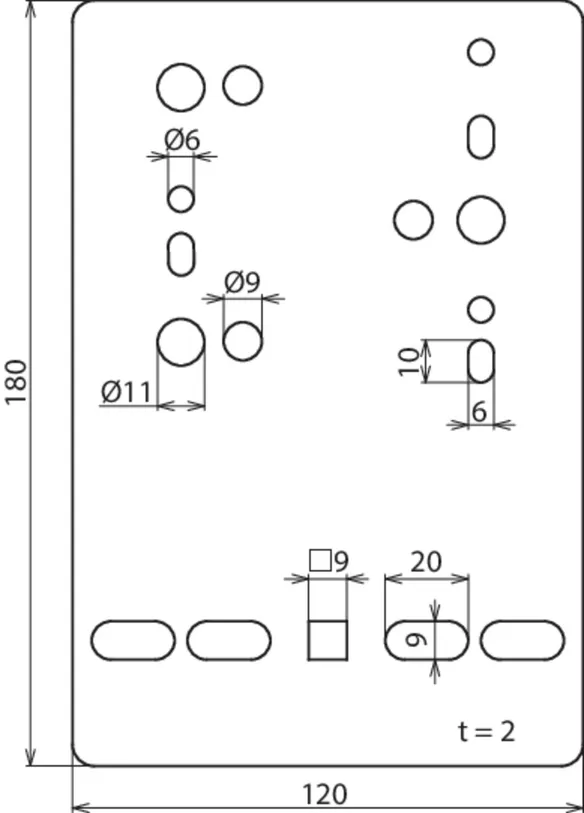 | Befestigungsbohrungen für Gitterbahn | [4x] 9 x 20 / [1x] 9 x 9 mm |