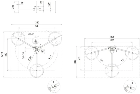 | Platzbedarf Stativ | 1300 x 1450 mm |