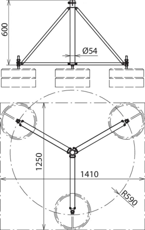 | Platzbedarf Stativ | 1200 x 1330 mm |