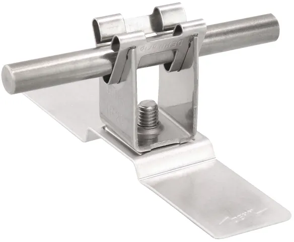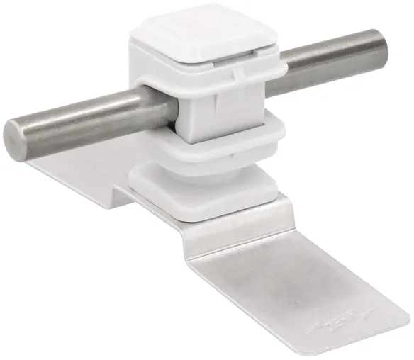 Für das Errichten von Fangeinrichtungen z. B. auf Trapez-Blechdächern. Der Leitungshalter kann auf glatten (nicht strukturierten) Untergründen wie Metalldächern / Metallflächen eingesetzt werden. Die Leitungshalter werden durch Kleben (Schutzfolie entfernen) auf dem Dach fixiert.