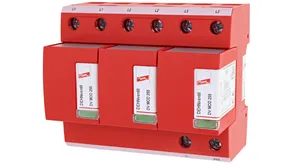 - Anschlussfertiger Kombi-Ableiter Typ 1 + Typ 2 + Typ 3 auf Funkenstreckenbasis, bestehend aus Basisteil und einem einzelnen gesteckten Schutzmodul