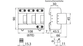 | SPD nach EN 61643-11 / IEC 61643-11 | Typ 1 + Typ 2 + Typ 3 / Class I + Class II + Class III |