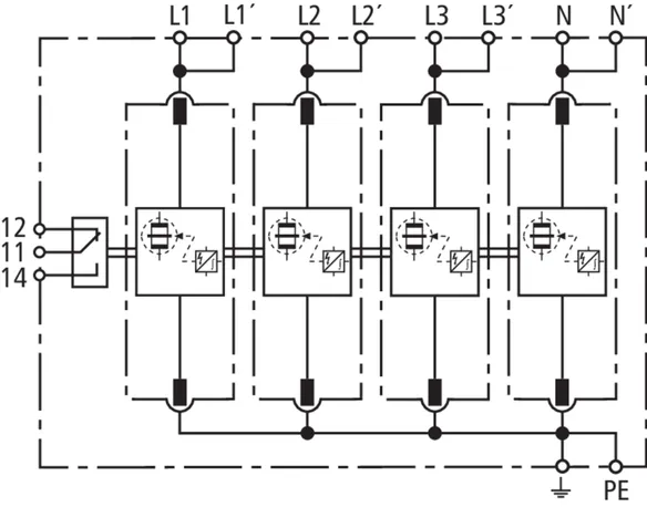 | Blitzstoßstrom (10/350 µs) [L1+L2+L3+N-PE] (Itotal ) | 100 kA |