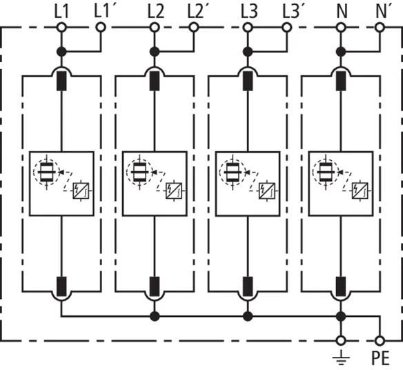Modularer Kombi-Ableiter für TT- und TN-S-Systeme (3+1-Schaltung).