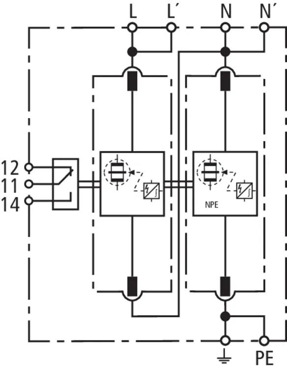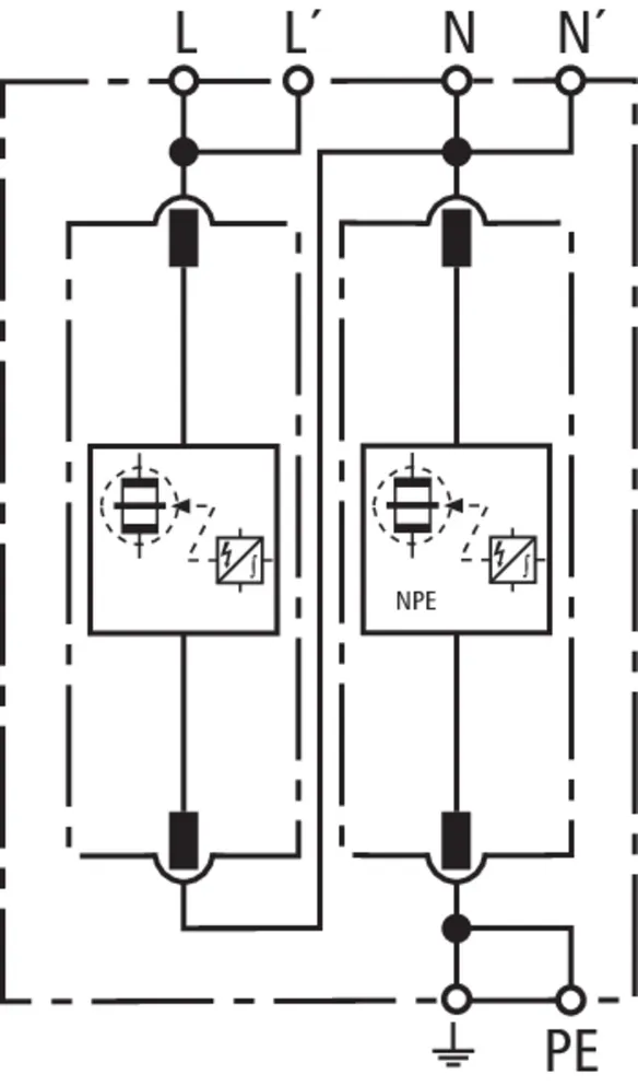 Modularer Kombi-Ableiter für einphasige TN-Systeme.