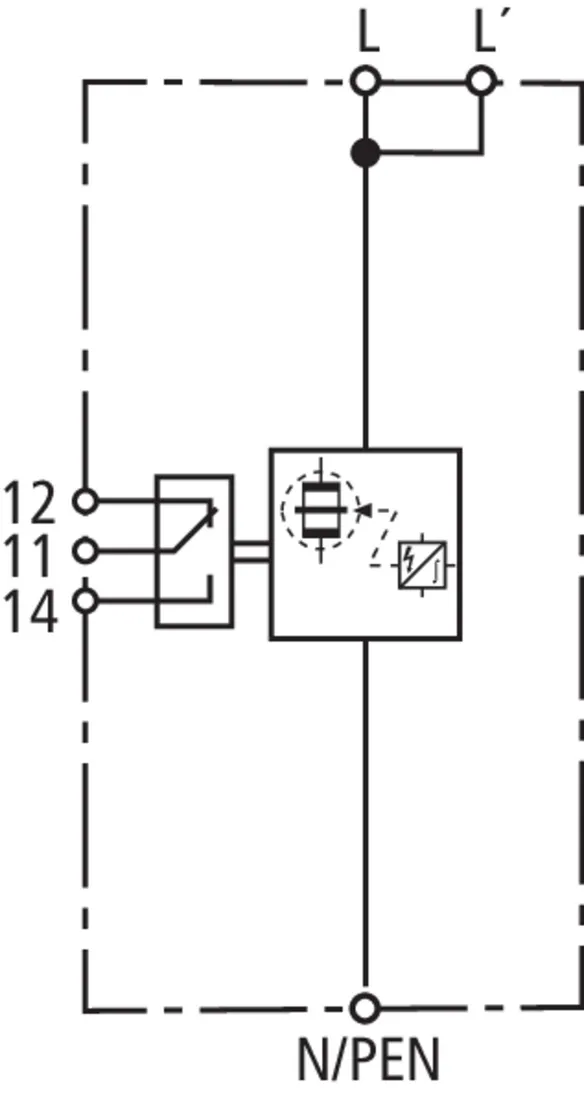 Koordinierter, einpoliger Blitzstrom-Ableiter zum Einsatz in 690 V-Systemen; mit Fernmeldekontakt für Überwachungseinrichtung (potentialfreier Wechsler).
