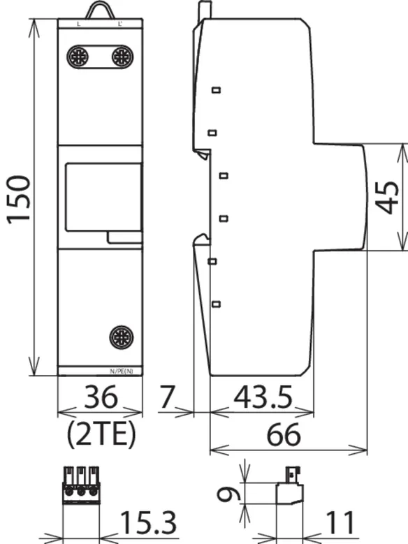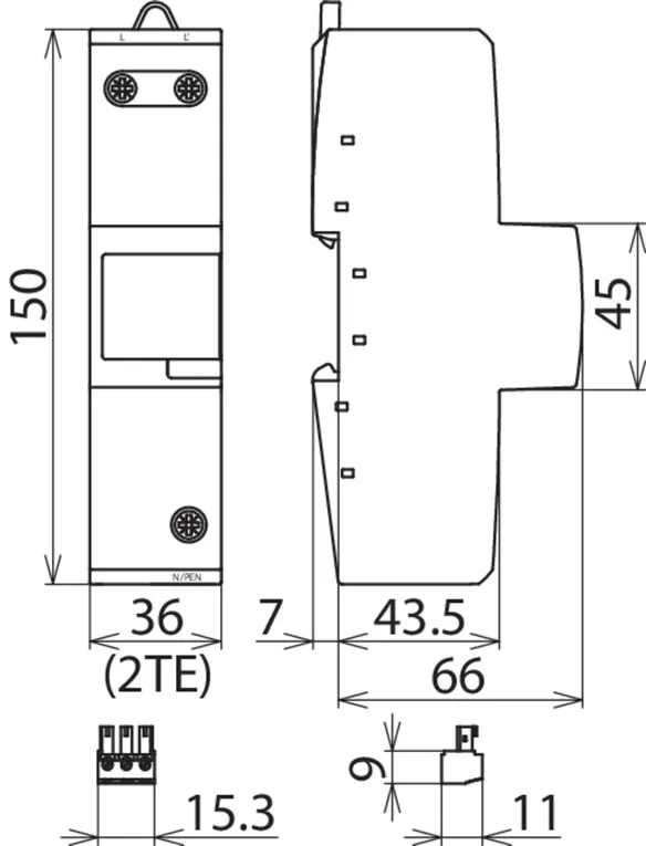 1-poliger, koordinierter Blitzstrom-Ableiter, Breite 2TE
