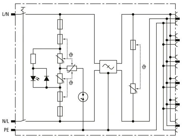 | Gesamtableitstoßstrom (8/20 µs) [L+N-PE] (Itotal ) | 5 kA |