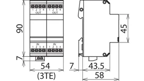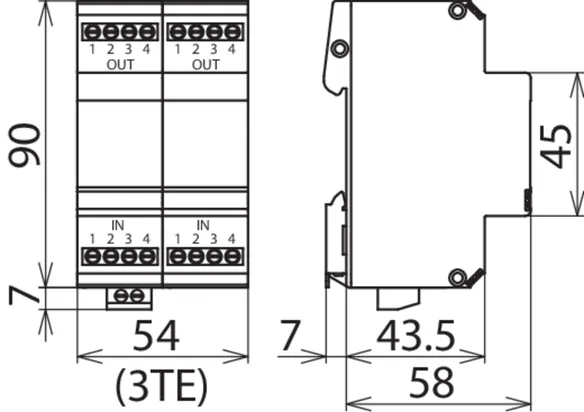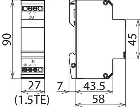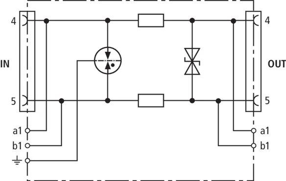 Energetisch koordinierter leckstromfreier Überspannungs-Ableiter für a/b-Ader, ISDN Uk0 oder ADSL mit RJ45-Anschlüssen und zusätzlichen Schraubklemmenanschlüssen. Das Pinning der RJ45-Buchsen ist RJ11/12-kompatibel. Die parallelen Schraubklemmen sind robuster als die RJ45-Buchsen und erhöhen den Nennableitstoßstrom gesamt auf 10 kA.