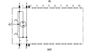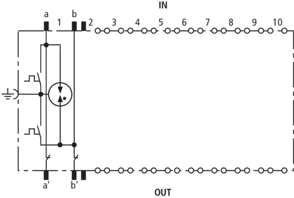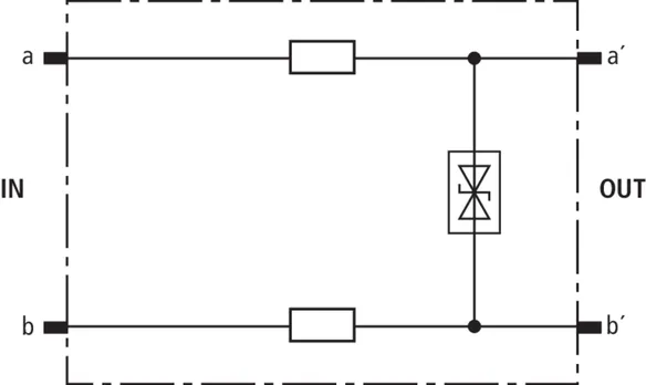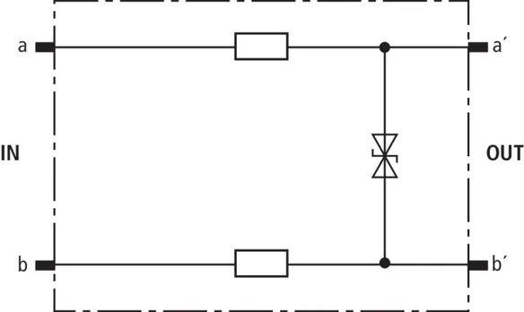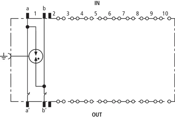 Schutzstecker 1 DA energetisch koordiniert zu DRL-Steckmagazin als einstufiger Endgeräteschutz mit Entkopplungsimpedanzen. Besonders geeignet für Signalkreise mit gemeinsamen Bezugspotential. Erdung über EF 10 DRL. Nur für Trennleisten oder DRL-Steckmagazin.