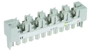 Steckmagazin (ohne Ableiter) zur Aufnahme von 1 bis max. 10 dreipoligen Gasentladungsableitern GDT 230 B3... . Ebenfalls geeignet zur Aufnahme von DRL-Schutzsteckern mit Erdungsrahmen.