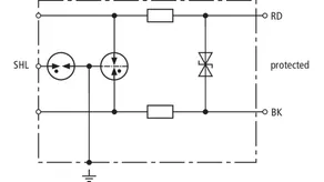Überspannungs-Ableiter mit kapazitätsarmer Schutzschaltung zum Schutz von eigensicheren Messkreisen und Bussystemen, erfüllt Anforderungen nach FISCO. Isolationsfestigkeit > 500 V gegen Erde.