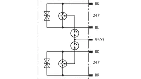 Überspannungs-Ableiter in druckfester Kapselung zum Einsatz in explosionsgefährdeten Bereichen zum Schutz von zwei 24 V-Schnittstellen.