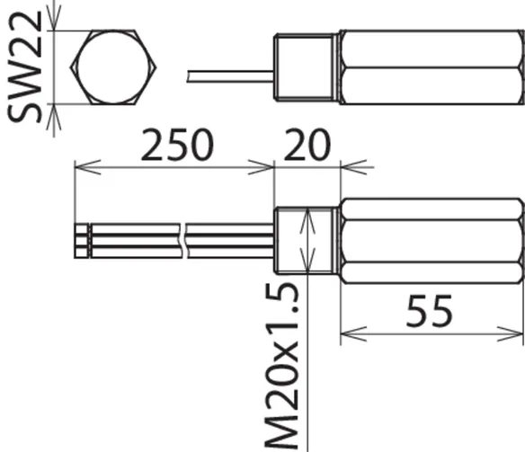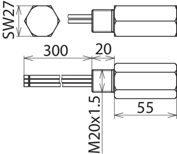 Montage Feld- / Geräteseite M20 x 1,5 Innengewinde / M20 x 1,5 Außengewinde