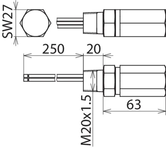 Energetisch koordinierter gegen Erde leckstromfreier zweistufiger Ableiter für 4-20 mA-Schnittstellen mit Schraubgewinde M20 x 1,5 (innen/außen). Schirmerdung direkt, indirekt oder ohne möglich. Kabelverschraubung als Zubehör lieferbar.
