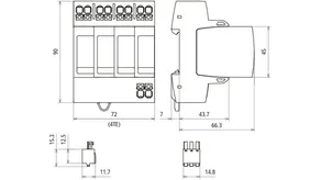 | SPD nach EN 61643-11 / ... IEC 61643-11 | Typ 2 + Typ 3 / Class II + Class III |