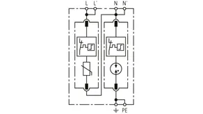 Modularer Überspannungs-Ableiter mit hohem Summen-Ableitvermögen im N-PE-Pfad für einphasige TT- und TN-Systeme (1+1-Schaltung). Erfüllt die höheren Sicherheitsanforderungen nach DIN VDE 0100-534 für den Einsatz am Speisepunkt der elektrischen Anlage; mit potentialfreiem Fernmeldekontakt.