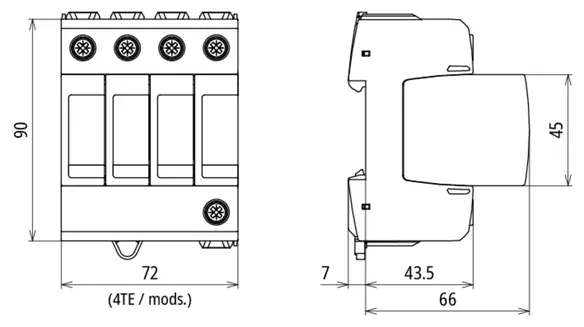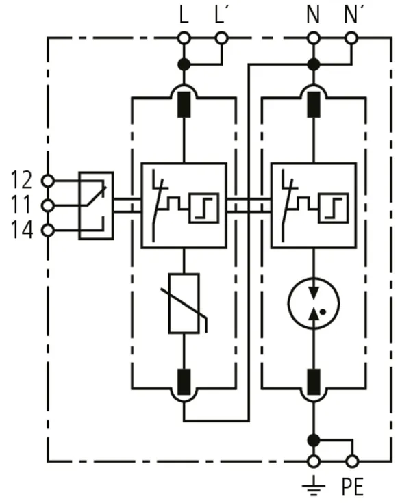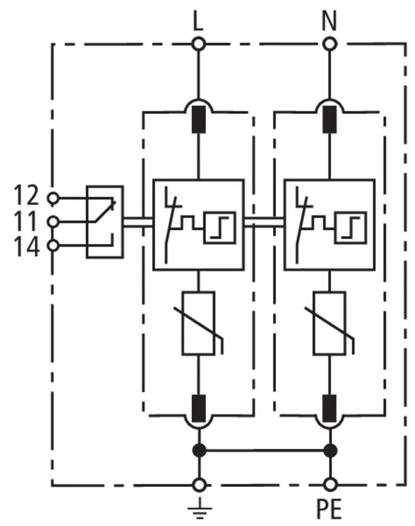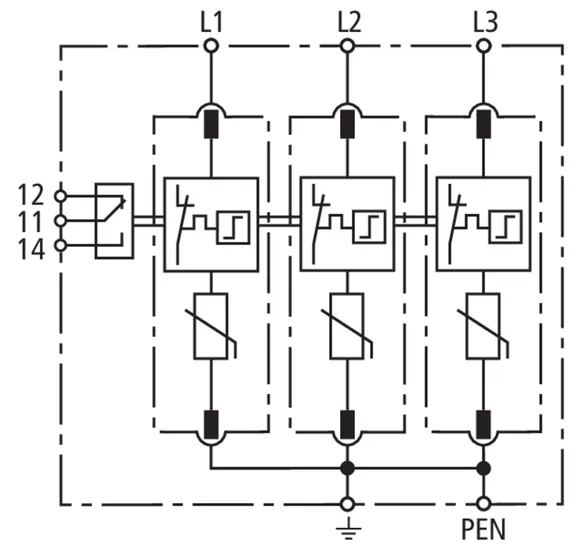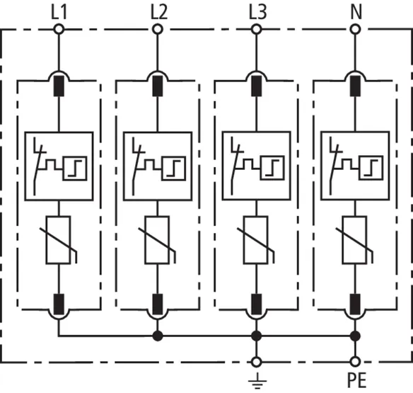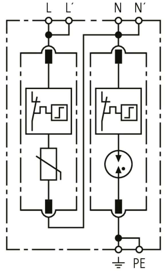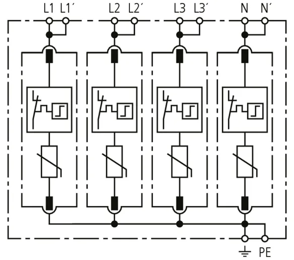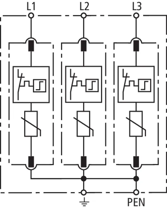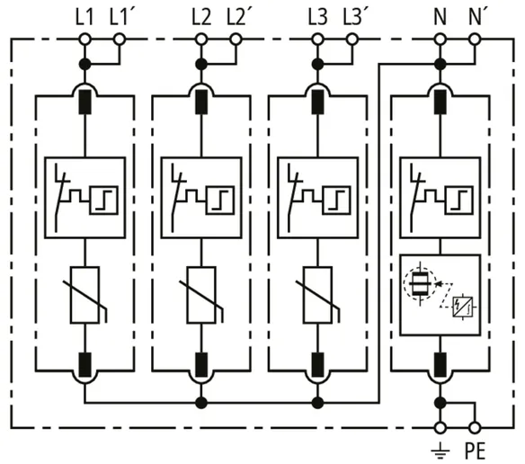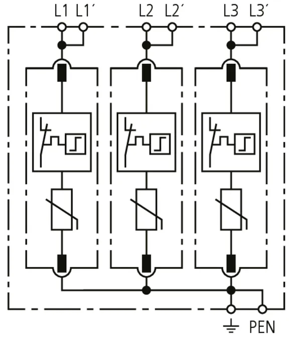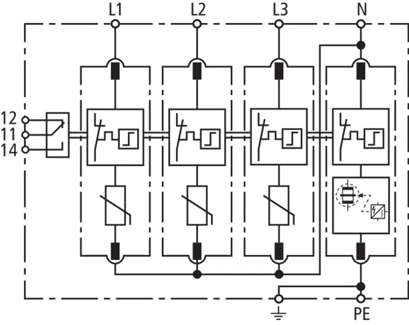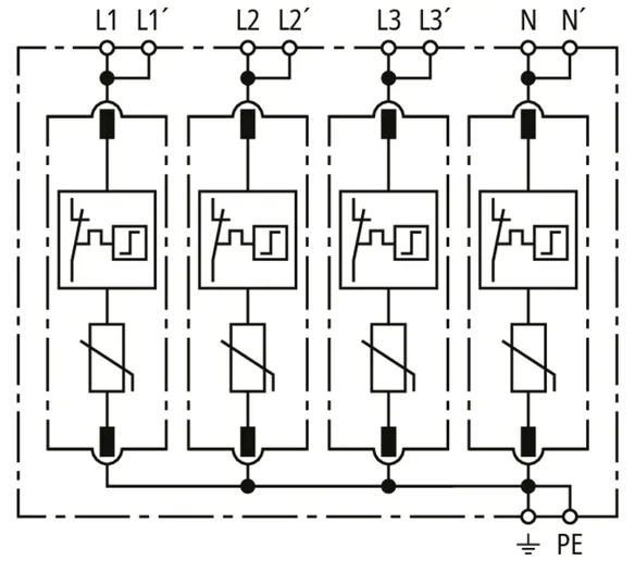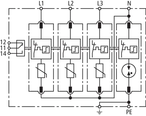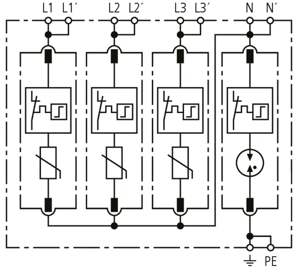 - Hohes Ableitvermögen durch leistungsfähige Zinkoxidvaristoren/Funkenstrecken