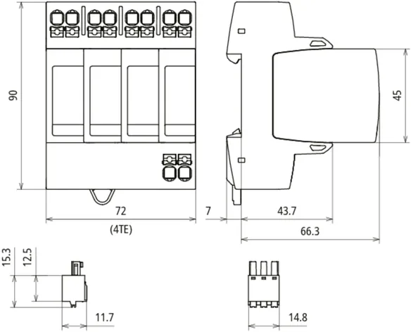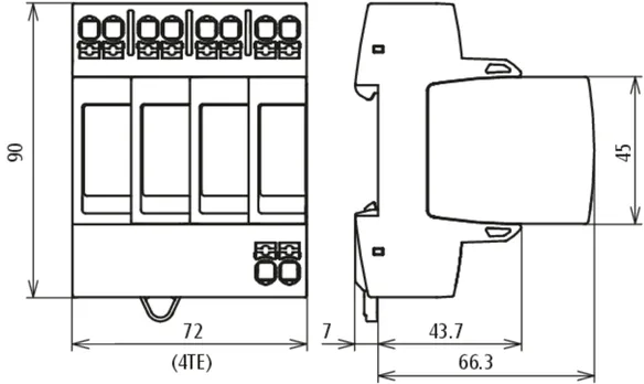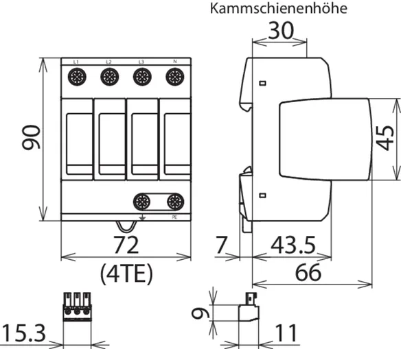 - Anschlussfertige Kompletteinheit bestehend aus Basisteil und gesteckten Schutzmodulen