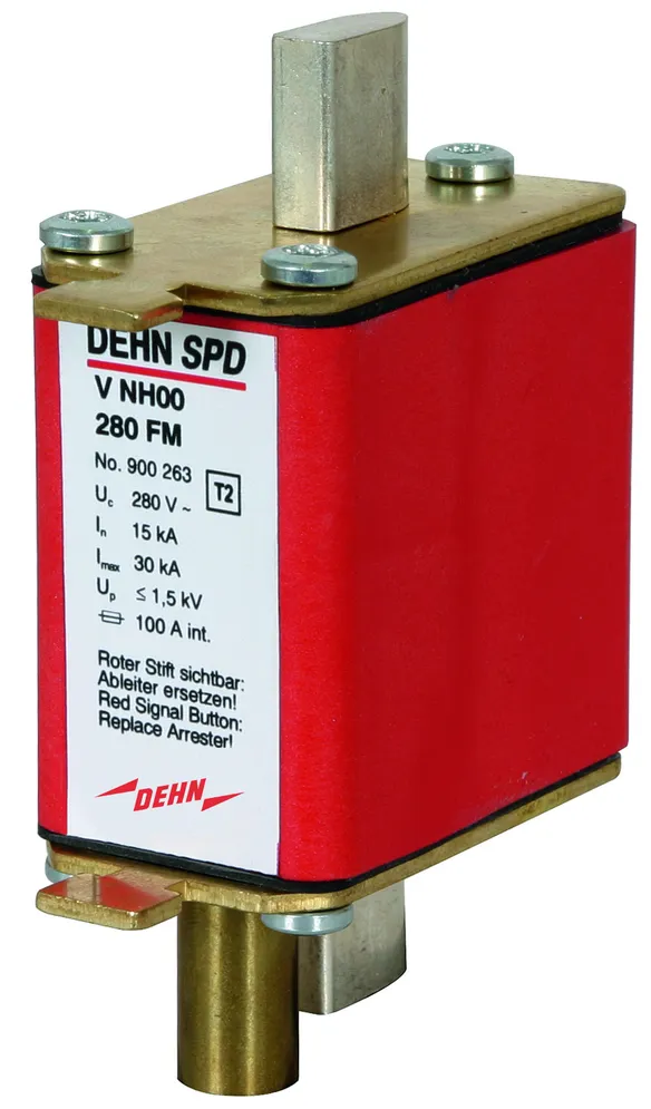 - Zinkoxidvaristor mit Überwachungseinrichtung, Abtrennvorrichtung und integrierter Ableitervorsicherung (VA NH... zusätzlich mit in Reihe geschalteter Funkenstrecke)
