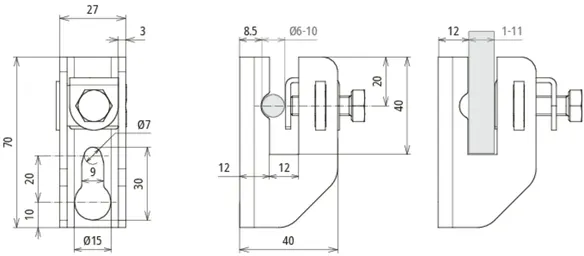 für Flachband bis 11 mm und Rundleiter Ø6-10 mm