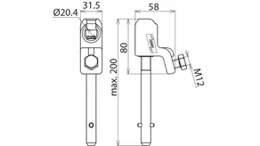 - Mit Verdrehungsschutz Ausführung PK1 bzw. PK2 und langer Schraubspindel mit Querstift