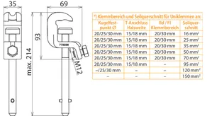 | Für Seilquerschnitt Cu | 16 ... 150 mm2 |