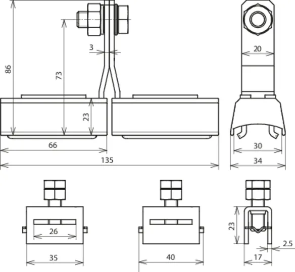 | Blitzstoßstrom (10/350 µs) Cu Ø6-12 mm (Iimp ) | 10 kA |