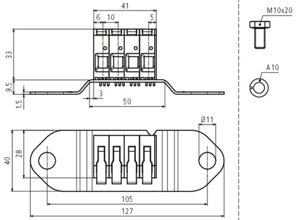 | Max. Kurzschlussstrom (AC 50 Hz / DC / 5 s) St/tZn 30x3,5 mm / 40x5 mm | 1500 A / T4 |