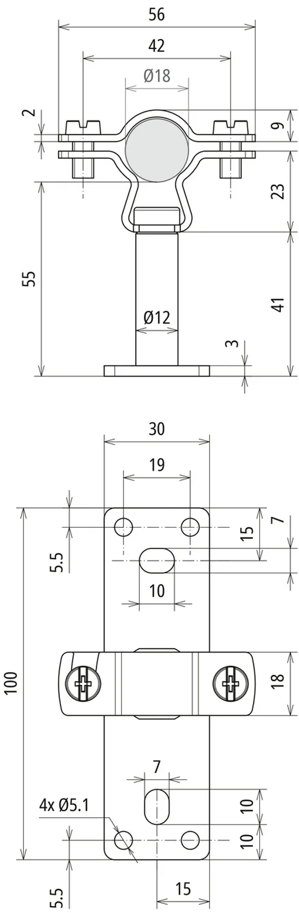 Zur Befestigung an Rohren (z. B. mit Bandrohrschelle (Art.-Nr. 106 323)) in den Ex-Zonen 1 und 21.