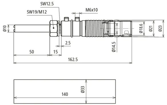 | Anschluss | Bolzen Ø10 mm, L 50 mm |