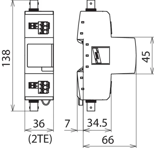 Zur Montage auf 35 mm Hutschiene 2 TE