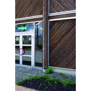 La zone pouvant mettre en danger des personnes se tenant à l’extérieur du bâtiment est définie par une hauteur d'environ 3 m à partir du sol et à une distance de 3 m autour du conducteur de descente. D’après la norme NF EN 62305-3 chapitre E.4.2.4.2, la zone à protéger contre les tensions de contact correspond à la hauteur d’une personne ayant la main levée augmentée de la distance de séparation s (voir fig. 2). De plus, la tension de pas à proximité de la construction ou du conducteur de descente doit être prise en compte.