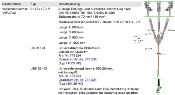 | Raccordement côté terre | UEK 25 HG |